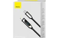 این کابل محصولی از شرکت بیسوس بوده که در رنگ های مشکی با کد CATLSK-01 و سبز با کد CATLSK-06 تولید شده است.با یک نگاه به کانکتور کابل تایپ سی به لایتنینگ بیسوس Baseus Display CATLSK-01 میتوانید توان ورودی به گوشیتان را ببینید. زیرا یک نمایشگر کوچک روی رابط کابل قرار داده شده مقدار دقیق توان را در لحظه مشخص میکند. این کابل از یک سر تایپ سی و از سر دیگر لایتنینگ است و طولی معادل 10 متر دارد.با اتصال این کابل به گوشی های آیفون حداکثر توان 20 وات PD را دریافت خواهید کرد.