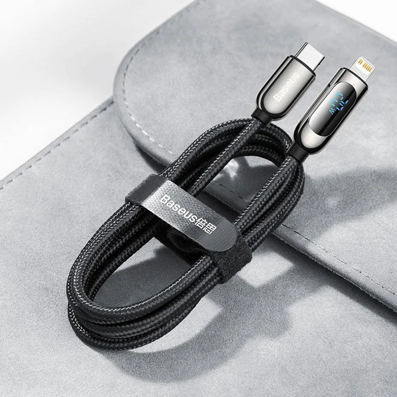 کانکتور کابل آیفونی بیسوس با یک نمایشگر دیجیتال تزئین شده که با اتصال به دستگاه به صورت Real-Time شروع به نمایش میزان توان خروجی می کند و با توجه به بررسی این مجموعه ویژگی ها به توانایی و کیفیت بالای این کابل لایتنینگ بیسوس پی می بریم.