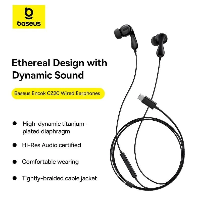 هدفون سیمی Baseus Encok CZ20 به گونه ای طراحی شده است که صدایی با کیفیت ارائه دهد و به کاربران امکان لذت بردن از موسیقی، تماشای فیلم یا برقراری تماس راحت را می دهد. این محصول با پورت Type-C سازگار است و به شما کمک میکند تا به بسیاری از دستگاههای مختلف مانند تلفن همراه، تبلت، لپتاپ و سایر دستگاههای صوتی متصل شوید.هدفون Baseus Encok CZ20 صدایی واضح و دقیق را برای تجربه موسیقی نهایی ارائه می دهد