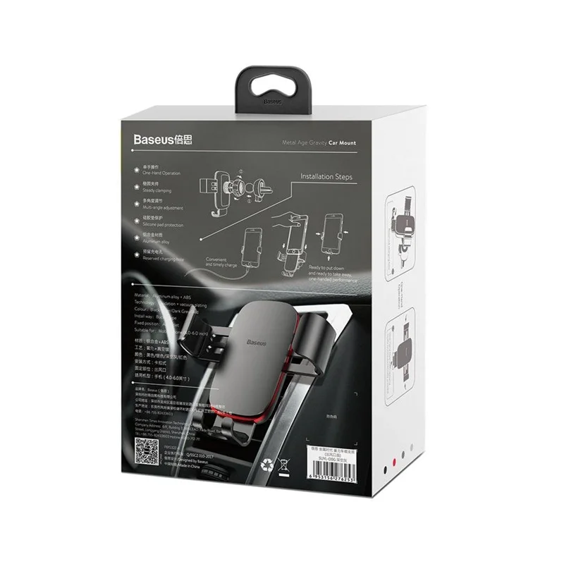 کمپانی بیسوس این محصول را در چهار رنگ طراحی و تولید کرده است. رنگ مشکی با کد SUYL-D01 و رنگ خاکستری با کد SUYL-D0G و رنگ نقره ای با کد SUYL-D0S و رنگ قرمز SUYL-D09 با کد نشان داده میشود.هولدر ها ابزاری هستند که برای تسلط بیشتر راننده بر روی گوشی همراه خود در حین رانندگی تولید شده اند.هولدر Metal Age Gravity محصولی از کمپانی Baseus بوده که از طریق گیره نگهدارنده بر روی دریچه کولر اتومبیل متصل شده و گوشی شما را به خوبی بر روی خود نگه می دارد.جنس بدنه این محصول ترکیبی از پلاستیک + ABS و فلز بوده که علاوه بر زیبایی آن ، مقاومت این هولدر را در برابر ضربه و خط و خش بسیار بالا برده است.