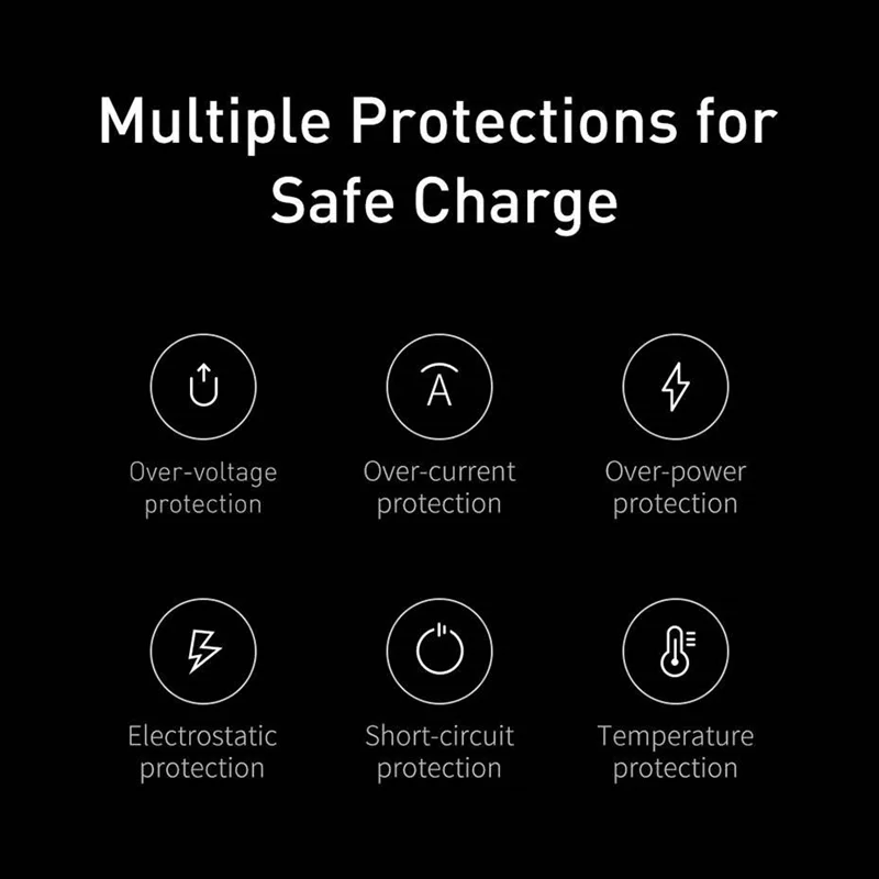 بیسوس برای راحت کردن خیال کاربران از استفاده این شارژر برای شارژ کردن وسایل اکترونیکی خود چندین سطح محافظتی بر روی این دستگاه قرار داده است. این سطوح شامل محافظت در برابر ولتاژ بیش از حد، شدت جریان بیش از حد، قدرت بیش از حد و اتصال کوتاه میشوند.