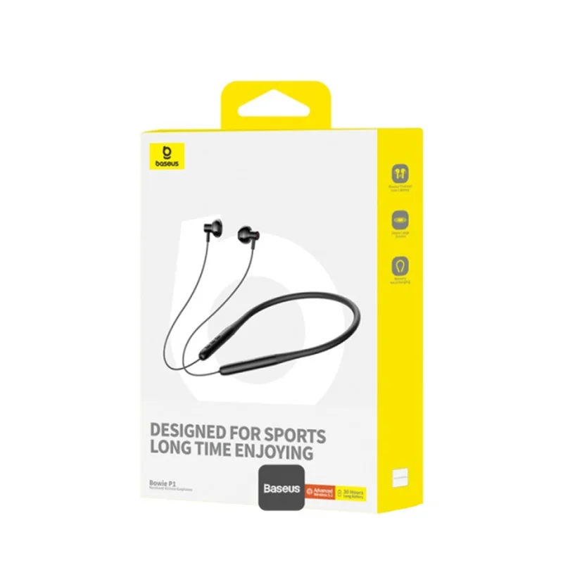 قسمت پشتی سری هندزفری گردنی بیسوس P1 Bowie مگنتی می باشد؛ این قابلیت باعث می شود در هنگامی که از هندفری استفاده نمی کنید آن ها را به هم متصل کرده که هم از افتادن آن جلوگیری شود و هم در هنگام راه رفتن سری ها به هم برخورد نکرده و جابجا نشوند. سری این هندزفری به صورتی طراحی شده که به راحتی داخل گوش قرار بگیرد و نگران افتادن آنها از گوشتان نباشید. بین دو سری هم یک کابل قرار دارد که دور گردن قرار میگیرد و از افتادن هندزفری جلوگیری میکند. پنل کنترل موزیک نیز روی این کابل تعبیه شده است.