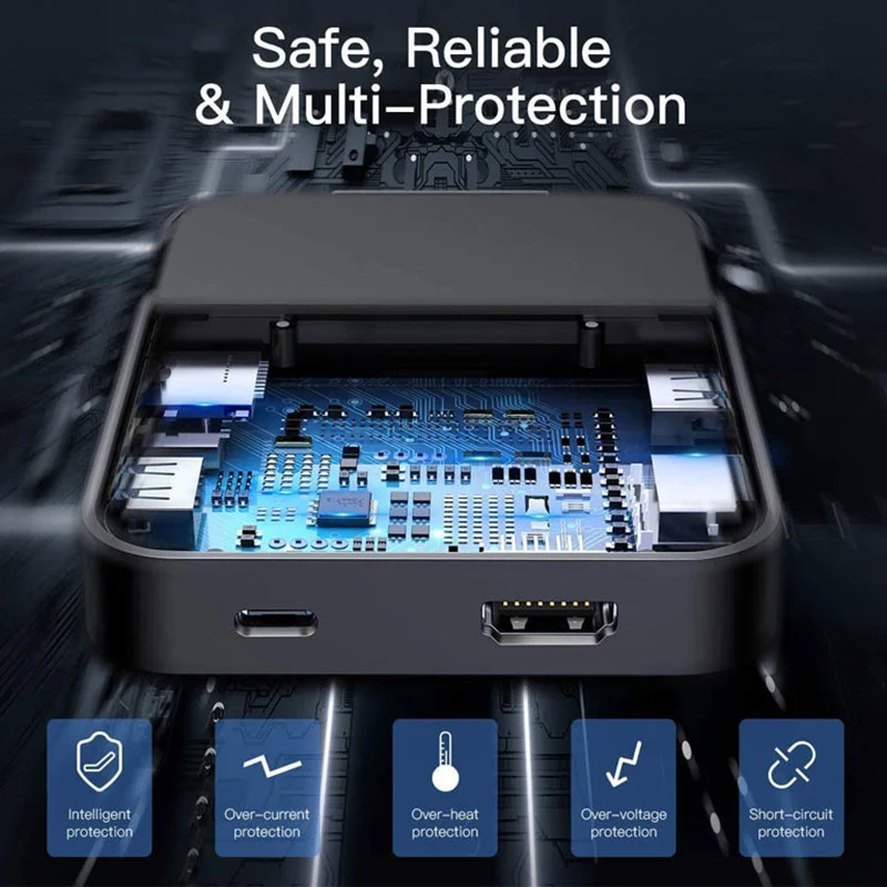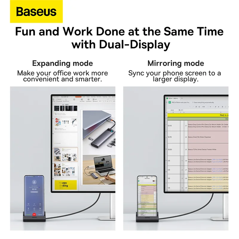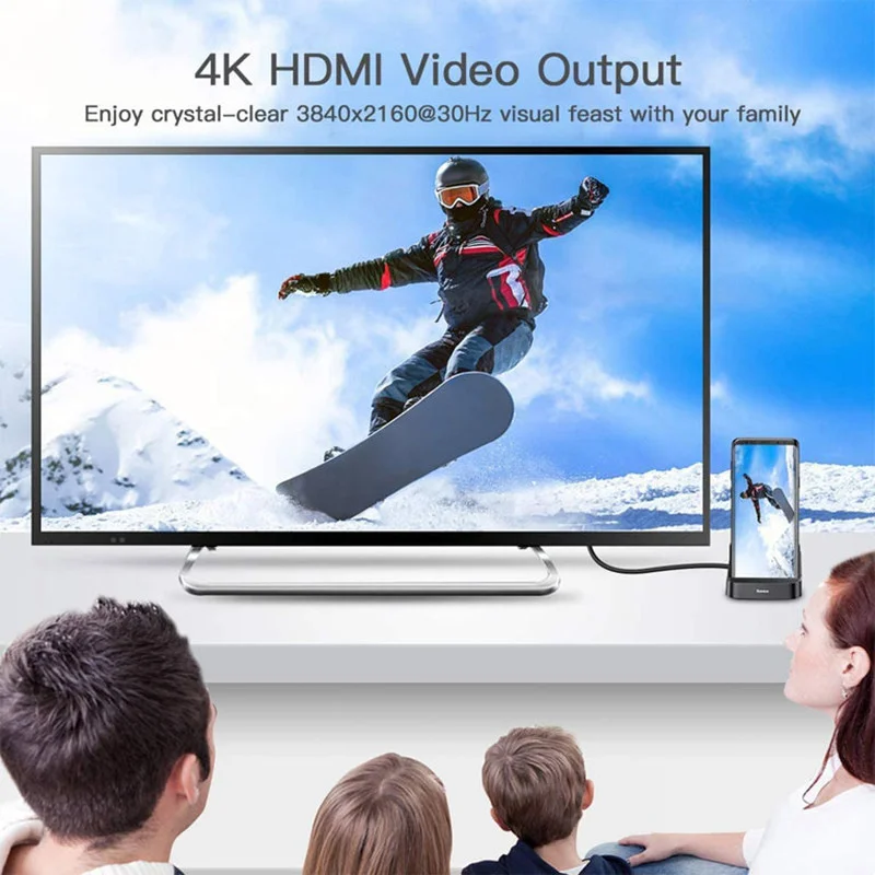 درگاه HDMI با استفاده از درگاه HDMI می توانید صفحه نمایش گوشی خود را روی تلویزیون، مانیتور یا پروژکتورهایی که دارای پورت HDMI هستند اصطلاحا Mirror کرده و به سادگی فیلم ببینید یا در کنفرانس ها از آن استفاده کنید.سازگاری داک چندکاره موبایل بیسوس WKMD000001 با گوشی های پرچمداری که دارای پورت تایپ سی هستند از جمله Samsung Galaxy S9/S8/S8+/Note8/Note9, Microsoft 950/950XL, Huawei Mate 20/Mate 20 Pro/Mate 10/Mate 10 Pro, LGG5/G7/300L, Lumia 950; Sony Xperia XZ2 Pro; Google Pixel2, HTC 10 و مدل های جدیدتر، سازگاری کامل دارد و می توانید استفاده کامل از این داک در این گوشی ها داشته باشید.