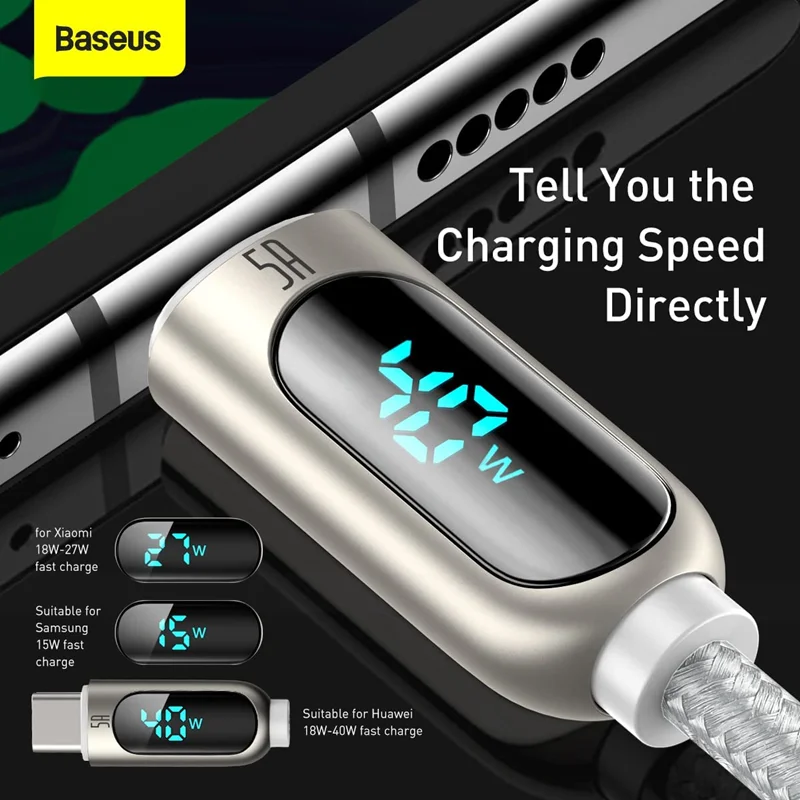 کابل Baseus Fast Charging Cable CATSK-A01 محصولی از شرکت بیسوس بوده که در رنگ های مشکی با کد CATSK-A01 و نقره ای با کد CATSK-A0S تولید شده است.امروزه در زمینه شارژ لوازم برقی شاهد شارژهای وایرلس هستیم اما همچنان کابل ها از سرعت و کیفیت بالا تری نسبت به این نمونه شارژرها برخوردار هستند. کابل CATSK-A0S محصولی بسیار با کیفیت از کمپانی نام آشنای Baseus است.حداکثر شدت جریان کابل Baseus Display Fast Charging Data Cable CATSK-A01 معادل 5 آمپر و توان 40 وات است که امکان شارژ شدن دستگاه با سرعت بسیار بالایی را برای شما مقدور می سازد البته به شرطی که دستگاه شما هم از آن پشتیبانی کند.