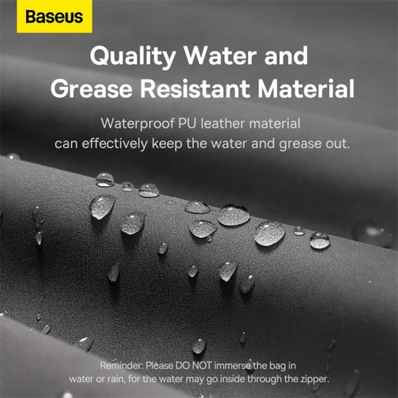 جنس تشکیل دهنده ی داخل و خارج کیف لوازم جانبی Baseus از چرم مصنوعی بوده که در برابر نفوذ آب مقاوم است. طراحی این محصول بسیار زیبا، خاص و شیک بوده و دارای یک جیب با زیپ بوده که فضای مناسبی برای قرار گرفتن لوازم و اکسسوری دیجیتال دارد. شما می توانید لوازمی از قبیل پاوربانک، شارژر، هندزفری، گوشی موبایل و ... را داخل اینکیف قرار بدهید. قابل ذکر است قرار دادن لوازم داخل کیف اکسسوری بیسوس از افتادن خط و خش بر روی وسایل شما جلوگیری می کند.