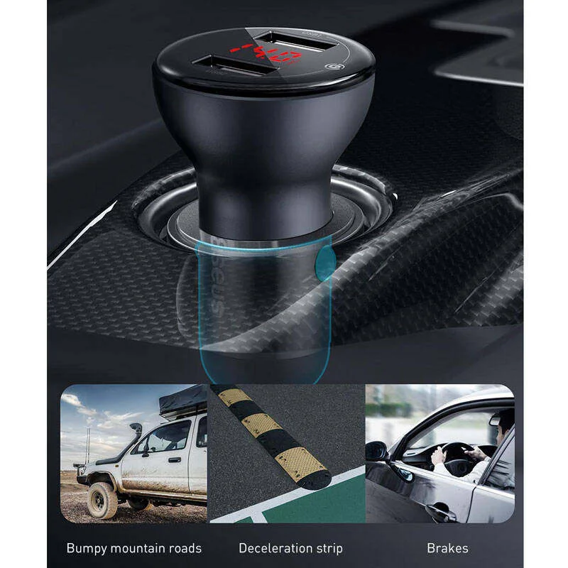 با همراه داشتن شارژر فندکی دیگر در مسیر های طولانی نگران خاموش شدن گوشی همراهتان نخواهید بود زیرا می توانید به راحتی گوشی خود را با استفاده از آن ها در اتومبیل شارژ کنید. شارژر فندکی بیسوس Baseus Digital Display Dual Quick Charger U + U 45W محصولی از کمپانی Baseus بوده که از خاموش شدن گوشی شما در اتومبیل جلوگیری می کند و به شما این امکان را می دهد تا بتوانید دو گوشی موبایل را به طور همزمان شارژ کنید. با قابلیت فست شارژی هم که در آن قرار دارد، شارژ شدن گوشی هایی که از قابلیت فست شارژ پشتیبانی میکنند، با سرعت بسیار بالا صورت می گیرد و به خوبی در وقت صرفه جویی می شود.