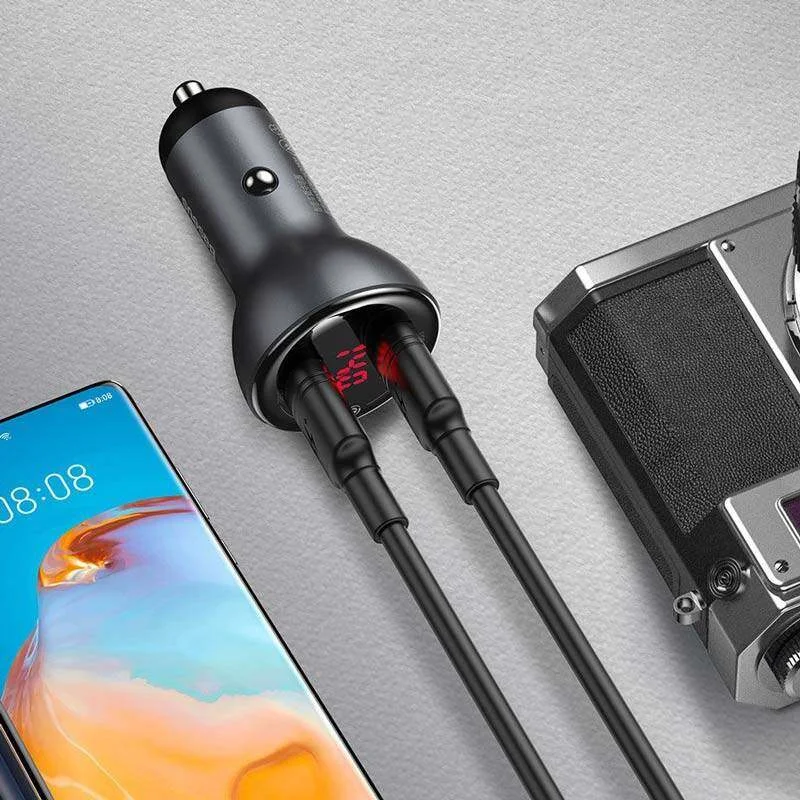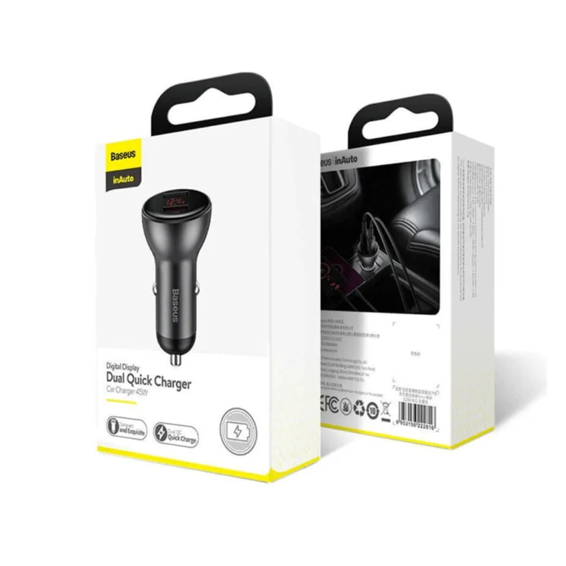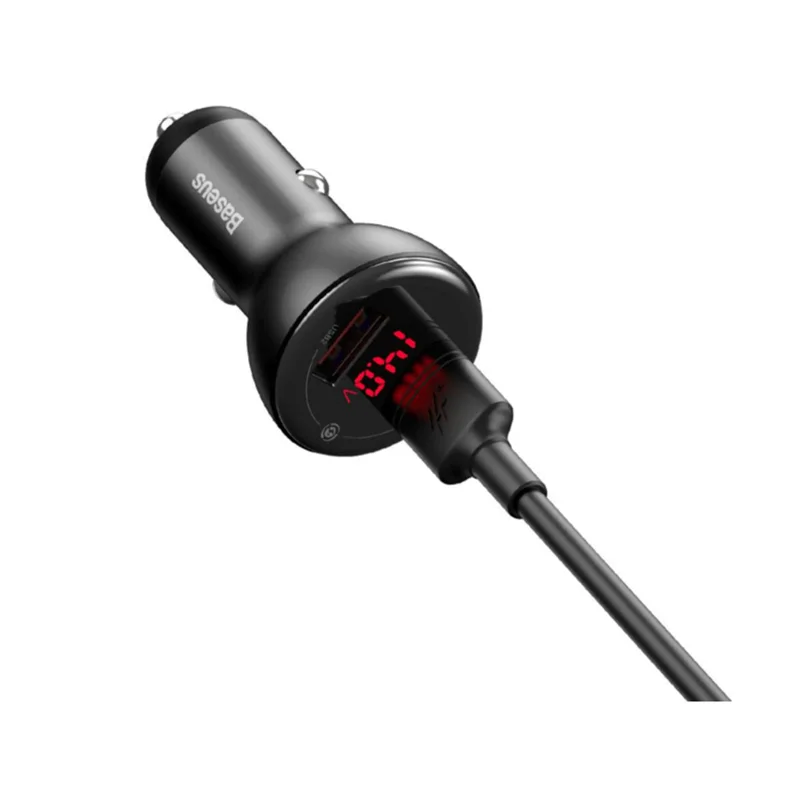 شارژر فندکی Baseus CCBX-B0G Digital Display Dual SCP Quick Charger Car Charger U + U 45W