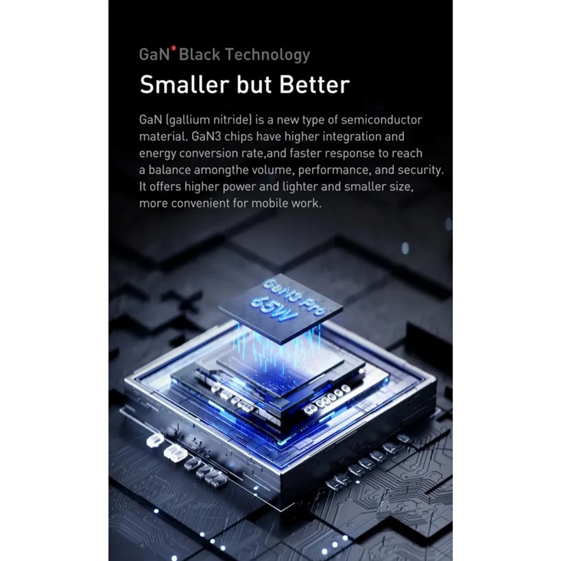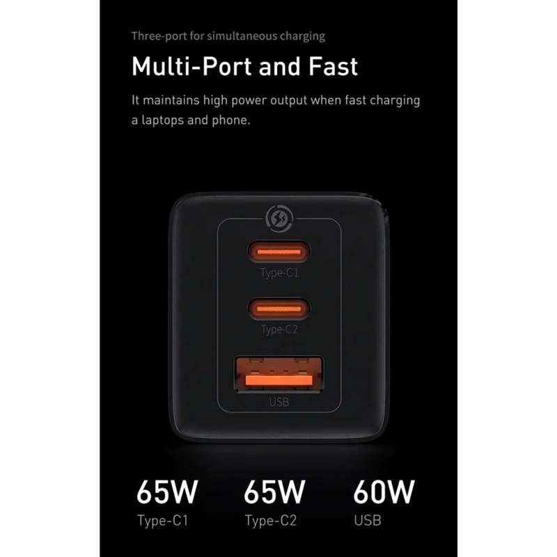 فست شارژر یکی از رقابتی ترین محصولات دیجیتال این دوره است. از آن جایی که اکثر گوشیهای پرچمدار از شارژ سریع پشتیبانی میکنند کمپانیها نیز در تلاش برای طراحی بهینهترین شارژرها هستند. پشتیبانی از قابلیت فست شارژ وخصوصاً استانداردهای Qualcomm سبب میشود تا باتری دوام بیشتری داشته باشد. آداپتور شارژ سریع Baseus GAN5 PRO 65W دارای یک پورت USB و 2 پورت Type C است که از پروتکل PD و QC نیز پشتیبانی میکنند. بدنه این شارژر نسبتاً کوچک بوده و به راحتی قابل حمل می باشد. هر سه درگاه روی بدنه قابلیت پشتیبانی از شارژ سریع دارند. جنس بدنه گلکی شارژر بیسوس GaN5 Pro از متریال ABS است که بسیار مستحکم و مقاوم در برابر حرارت است.بدنه شارژر، ابعادی برابر با 32×36×61 میلی متر دارد. شارژ سریع با قابلیت های QC و PD توان خروجی کلی آداپتور فست شارژ بیسوس GAN5 PRO برابر با 65W است. این توان بالا کمک می کند تا شما بتوانید گوشی های خود را که از این توان پشتیبانی می کنند را با سرعت بالایی شارژ کنید.
