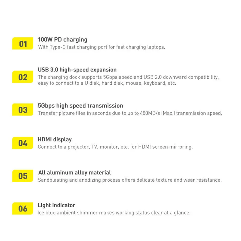 بهجز 1 درگاه خروجی Type-C که اتصال WKWG020113 به لپتاپ، تبلت یا تلفن همراه شما را ممکن میکند، این هاب و مبدل دارای دو پورت خروجی USB 3.0، یک ورودی USB-C، یک ورودی Type-C، یک درگاه HDMI، یک شکاف TF و یکی دیگر برای کارت SD است. به این ترتیب شما را قادر میسازد تا بسیاری از کارهای خود را مدیریت و وسایل الکترونیکیتان را کنترل کنید.