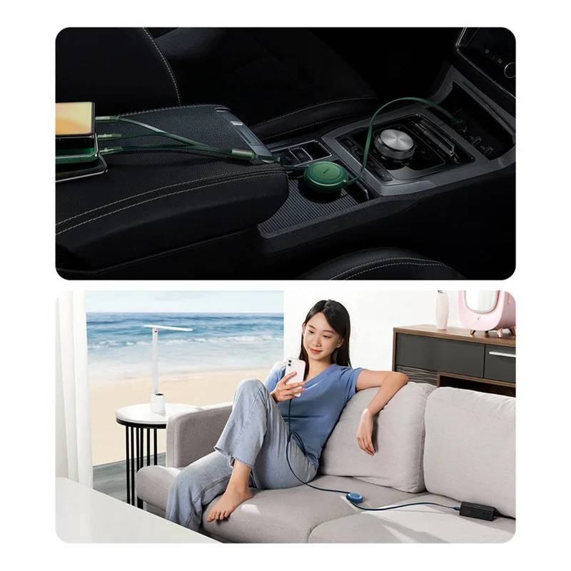 کابل چندکاره بیسوس مجهز به قرقره ای است که امکان تنظیم طول کابل را در 5 حالت برایتان فراهم کرده است.اندازه های 120cm ، 110cm ، 80cm ، 60cm و 35cm. فقط کافیست دو سر کابل را بکشید تا با کمک سیم جمع کن قره قره ای به اندازه مورد نظرتان برسید.