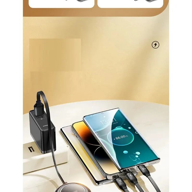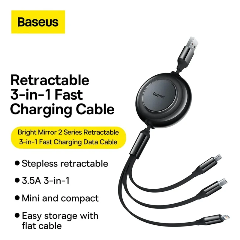 یک کابل برای بسیاری از دستگاه های مختلف؟ ممکن است! Baseus Bright Mirror 2 مجهز به سه خروجی است که به شما این امکان را می دهد تا انرژی دستگاه های مختلف را به سرعت و ایمن تجدید کنید. کانکتور لایتنینگ برای شارژ آیفون مناسب خواهد بود، خروجی USB-C به شما این امکان را می دهد که گوشی های هوشمند برندهایی مانند هوآوی، آنر، شیائومی یا سامسونگ را شارژ کنید و کانکتور micro USB برای تجدید انرژی پاوربانک ها، فن های کوچک و سایر دستگاه ها مفید خواهد بود.