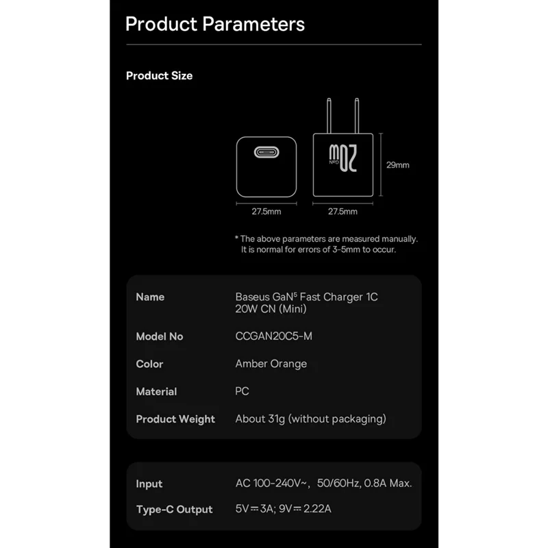 اکنون می توانید دستگاه های خود را در کمترین زمان شارژ کنید. شارژر Baseus GaN3 امکان شارژ سریع را برای شما فراهم می کند.این شارژر از خروجی توان PD 20 واتی از نسل پنجم GaN Technology پشتیبانی میکند و 50 درصد کوچکتر از شارژر 20 واتی اپل است. فناوری بهبود یافته GaN5 سرعت شارژ دستگاه های شما را تا 16.67 درصد افزایش می دهد و همچنین اتلاف انرژی را تا 25% کاهش میدهد.نگران ایمنی شارژر یا دستگاه های متصل به آن نباشید. این محصول به محافظت موثر در برابر اتصال کوتاه، اضافه ولتاژ و جریان اضافه مجهز شده است. همچنین از فناوری پیشرفته BCT (تکنولوژی خنک کننده Baseus) استفاده می کند که اتلاف گرمای موثر را تضمین می کند و از دستگاه در برابر گرمای بیش از حد محافظت می کند.شارژر Baseus بسیار سبک است,وزن آن تنها حدود 31 گرم است. همچنین با اندازه جمع و جور متمایز می شود. می توانید به راحتی آن را در کوله پشتی یا کیف خود قرار دهید یا حتی آن را در جیب خود قرار دهید. فضای زیادی را اشغال نخواهد کرد.این شارژر با آیفون 12 و 13، آیپد پرو، و گوشی های هوشمند شیائومی، سامسونگ و هواوی و غیره سازگار است.