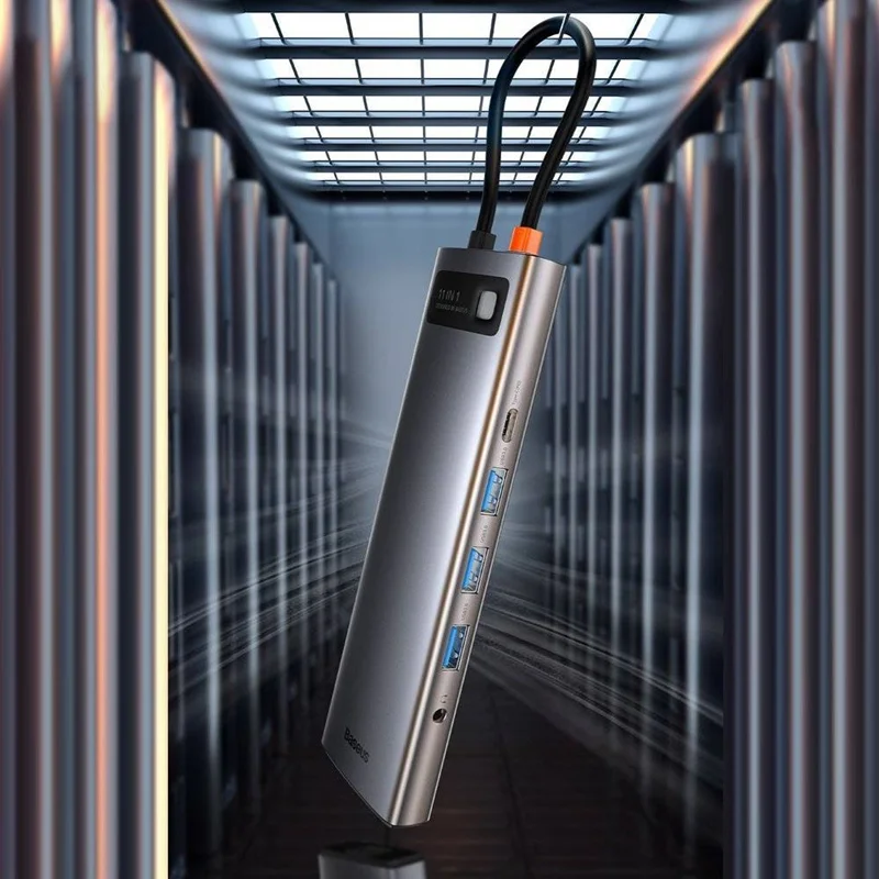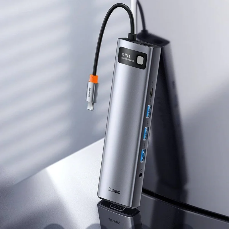اشغال بودن درگاه های لپ تاب ، PC و ... یا نداشتن درگاه مورد نیاز ما بر روی آن یکی از مشکلاتی است که هر شخصی ممکن است با آن مواجه شود و برای استفاده همزمان چند دستگاه با هم نیاز به وسیله ای داریم که دارای چند پورت مختلف باشد و بتواند این نیاز ما را برطرف نماید.اما نگران نباشید!!!هاب چاره ای برای این موقعیت می باشد و کمپانی بیسوس که شرکتی فعال در زمینه انواع لوازم های جانبی می باشد ، هاب 11 پورت بیسوس Baseus Metal Gleam 11 in 1 Multifunctional Type-C HUB را روانه بازار نموده است.وجود درگاه های متفاوت،کارایی بالا و سرعت انتقال دیتاها از ویژگی های بارز این محصول میباشند که با هم به بررسی آن ها می پردازیم.