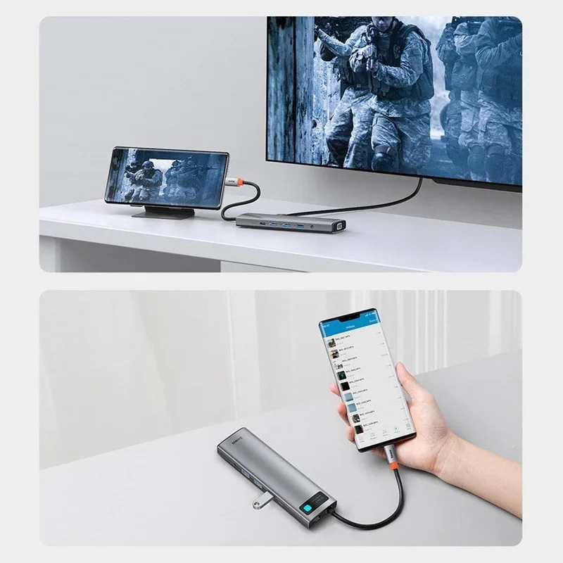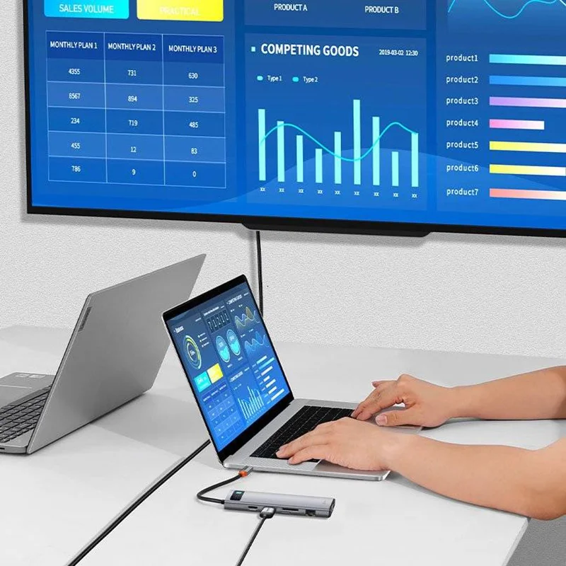 چه چیز دیگری باعث می شود که هاب Baseus برای تماشای فیلم یا برگزاری یک کنفرانس خوب باشد؟ پورت HDMI به شما امکان می دهد کیفیت تصویر عالی 4K/30Hz را نمایش دهید، بنابراین می توانید از غنای خیره کننده جزئیات و رنگ های واضح و طبیعی لذت ببرید. قسمت بعدی سریال مورد علاقه خود را به راحتی بر روی صفحه نمایش بزرگ تماشا کنید یا به مخاطبان خود یک ارائه جالب پر از اسلایدهای جذاب و در عین حال واضح نشان دهید.
