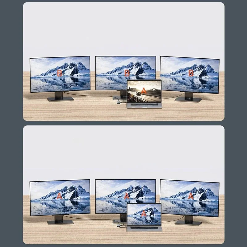 دوست دارید فیلم ها را روی صفحه بزرگ تماشا کنید؟ یا شاید شما اغلب سخنرانی یا سخنرانی می کنید؟ هاب چند منظوره Baseus مطمئناً مفید خواهد بود! این محصول به 2 پورت HDMI و 1 پورت VGA مجهز شده است. این به شما امکان می دهد در 3 صفحه نمایش دیگر نمایش دهید. هنگام یادداشت برداری، تغییر تنظیمات یا کار با لپ تاپ، تصویر را در همه دستگاه ها کپی کنید یا اسلایدها یا موارد ضبط شده را روی 3 نمایشگر نشان دهید. همچنین می توانید برای مثال، یکی از 4 صفحه در حال استفاده را سیاه کنید. امکانات واقعا بزرگ است!