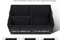 سازمان دهنده با طراحی تاشو خود شما را به وجد خواهد آورد. بنابراین می توانید به راحتی آن را در اندازه A4 تا کنید و برای صرفه جویی در فضای صندوق عقب آن را قرار دهید. علاوه بر این، درب قابل جابجایی کاملاً از وسایل شما در برابر سرقت محافظت می کند. برای ساخت آن از پارچه باکیفیت استفاده شده است که ضد آب و خش است - بنابراین می توانید مطمئن باشید که برای مدت طولانی در شرایط عالی به شما خدمت خواهد کرد.