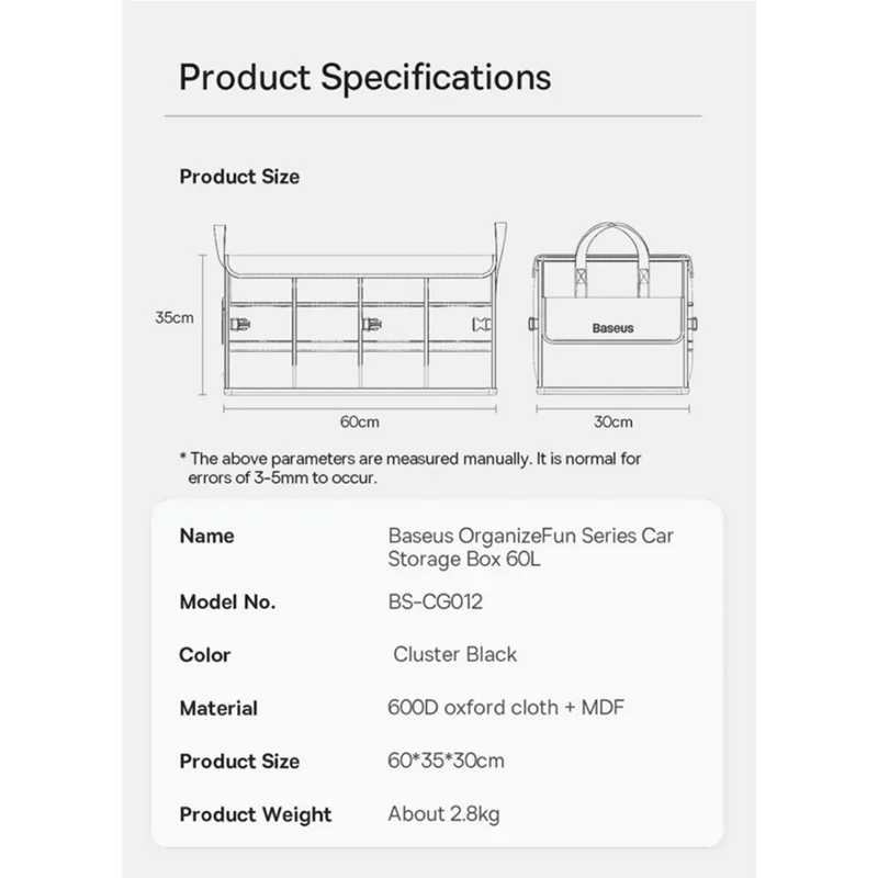 وسایل را به راحتی در ماشین خود ذخیره و حمل کنید! سازمان دهنده اتومبیل Baseus OrganizeFun به شما کمک می کند تا صندوق عقب خود را مرتب نگه دارید و به لطف طراحی تاشو، می توانید به راحتی آن را در مواقعی که به آن نیاز ندارید تا کنید. این دستگاه به دلیل ظرفیت بالای 60 لیتری خود متمایز است، بنابراین می توانید هر آنچه را که نیاز دارید در آن قرار دهید.
