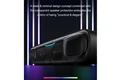 نوار صوتی نه تنها با کیفیت صدای عالی خود شما را تحت تأثیر قرار می دهد بلکه میز کار شما را نیز تزئین می کند. دارای طراحی مینیمالیستی و مدرن است که به راحتی می توان آن را در هر چیدمانی گنجاند. همچنین نسبتا جمع و جور است - فقط در حدود 375 × 76 × 60 میلی متر است. به راحتی می توانید آن را روی قفسه یا میز قرار دهید! مزیت اضافی دستگاه نور پس زمینه 7 رنگ RGB آن است. با استفاده از برنامه اختصاصی می توانید سبک آن را مطابق با ترجیحات خود سفارشی کنید.