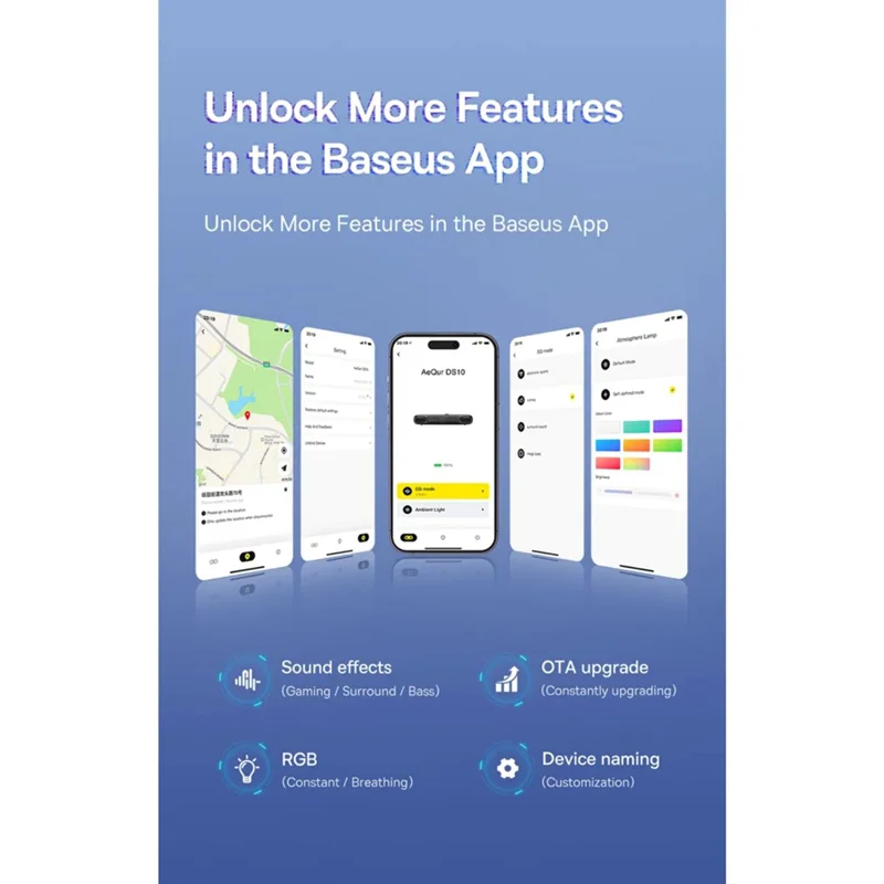 برنامه Baseus را نصب کنید و به ویژگی های اضافی دسترسی پیدا کنید. با آن می توانید به راحتی جلوه های صوتی را فعال کنید، تنظیمات را انجام دهید و دستگاه خود را به روز کنید. شما همچنین فرصتی برای پیکربندی پیشرفتهتر نورپردازی RGB دارید. ترکیب رنگ را انتخاب کنید و روشنایی نور را تنظیم کنید - انتخاب با شماست!
