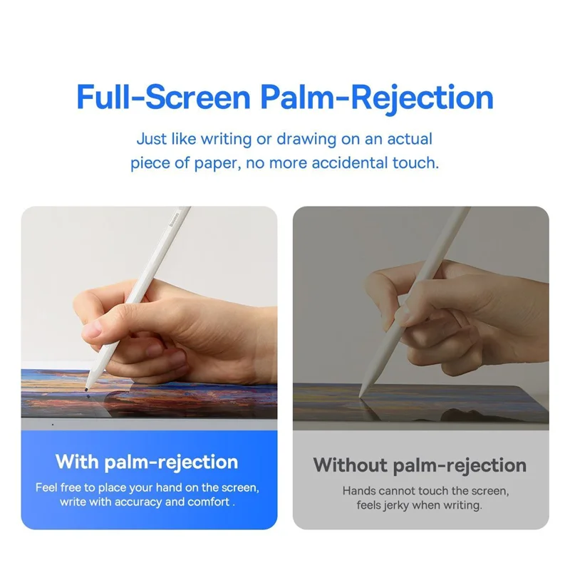 با پیشنهاد Baseus کارایی کار خود را افزایش دهید و آثار هنری خیره کننده خلق کنید! جاذبه مغناطیسی قوی قلم یک اتصال پایدار را تضمین می کند و حساسیت فشار بالا امکان ترسیم و نوشتن دقیق را فراهم می کند. به لطف فناوری Palm-Rejection، میتوانید بدون نگرانی از لمسهای تصادفی، آزادانه از دستگاه استفاده کنید. می توانید آزادانه ضخامت خطوط خود را با کج کردن قلم در زاویه مناسب تنظیم کنید. علاوه بر این، این محصول با زمان کار طولانی خود متمایز است و با Microsoft MPP2.0 سازگار است.