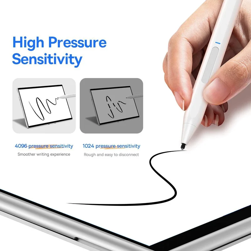 به لطف طراحی بدون لغزش، از استفاده راحت لذت ببرید. طراحی براق با چسبندگی بهبود یافته و قاب آلیاژ آلومینیومی مات هم کارایی و هم ارزش زیبایی را ارائه می دهد. طراحی مغناطیسی آن را آسان می کند تا قلم را ذخیره کنید - می توانید به راحتی آن را به تبلت خود وصل کنید. این دستگاه همچنین کیفیت سیگنال قابل اعتمادی را ارائه می دهد. علاوه بر این، نوک های قلم قابل تعویض هستند.