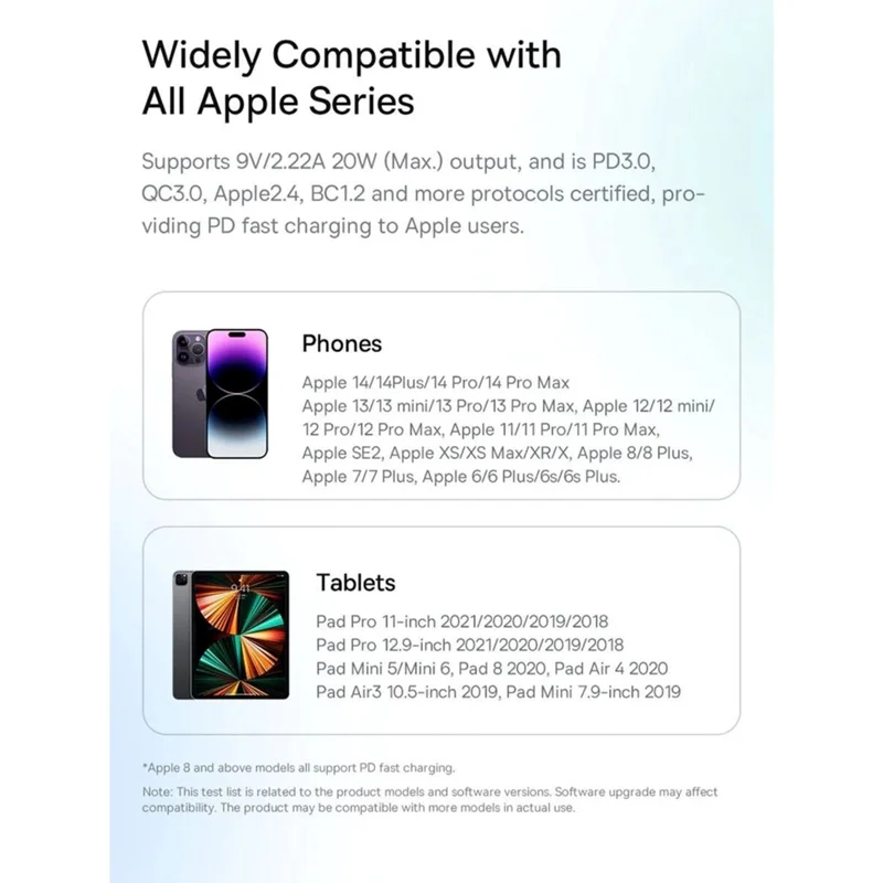 شارژر اصلی Baseus مینی مجهز به فناوری GaN است که استفاده از آن را راحت می کند. اگرچه اندازه جمع و جور آن ممکن است شما را شگفت زده کند، فریب نخورید. این شارژر با وجود اندازه کوچکش، قدرت واقعی را پنهان می کند. با 20 وات قادر است گوشی شما را تنها در 26 دقیقه تا 50 درصد شارژ کند. برای کسانی که از کارایی و عملی بودن قدردانی می کنند عالی است. این شارژر گواه این است که قدرت فوق العاده می تواند در یک بسته کوچک جا شود.