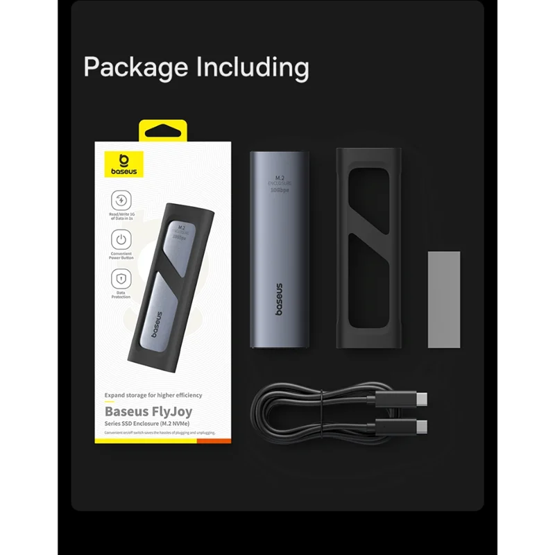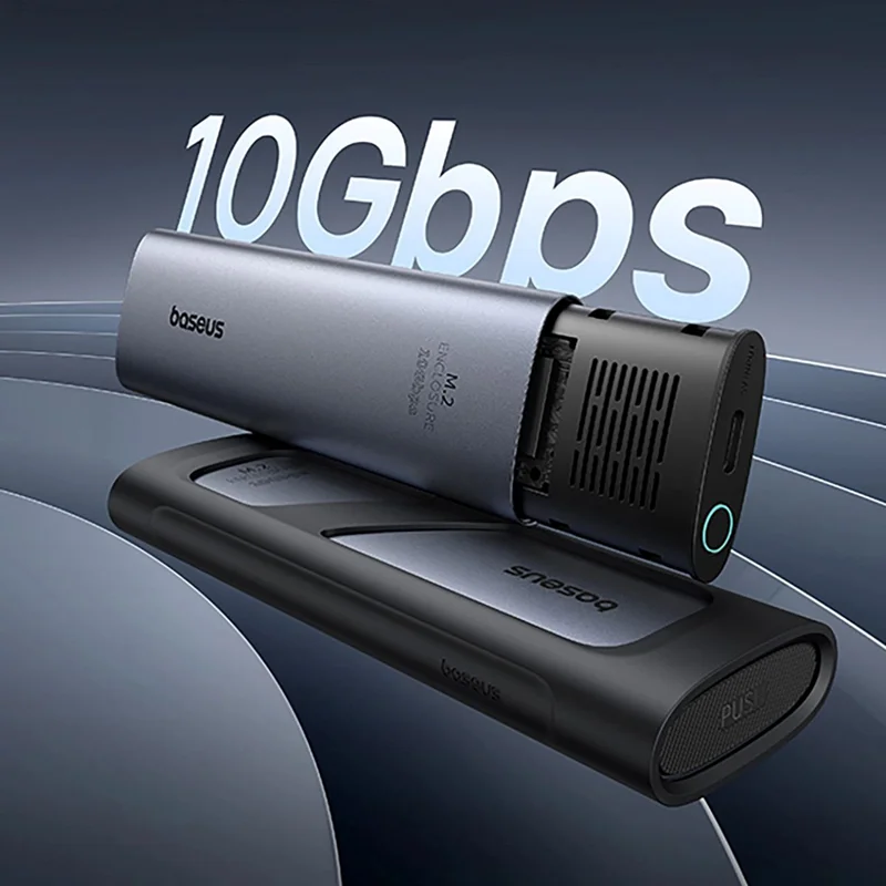 با درگاه USB3.2 Gen 2 و سرعت انتقال تا 10 گیگابیت در ثانیه، جعبه درایو SSD Baseus FlyJoy انتقال سریع و کارآمد داده را فراهم می کند. یک کابل USB-C / USB-C در مجموعه گنجانده شده است که به شما امکان می دهد به دستگاه های مختلفی مانند تلفن، تبلت و کنسول های بازی Steam Deck یا ROG Ally متصل شوید. بنابراین میتوانید در هر زمان از عکسها و ویدیوها نسخه پشتیبان تهیه کنید، فیلمهای HD را بدون دردسر ذخیره کنید و بازیها را به راحتی و به سرعت دانلود کنید.