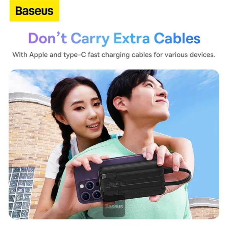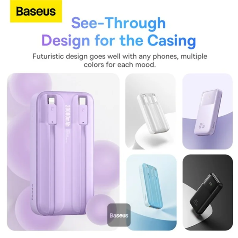 شارژر همراه بیسوس Comet Series ظرفیت 20000 میلی آمپر توان 22.5 وات در دو رنگ مشکی با کد فنی PPMD020101، رنگ سفید با کد فنی PPMD020102، بنفش و آبی در ابعاد 35.9×70×132.3 میلیمتر و وزن 360 گرم تولید شده و گزینه ایدهآلی برای شارژ همزمان 4 دستگاه می باشد. این پاوربانک با کابلهای متصل به پاوربانک (تایپ سی و لایتنینگ)، با طراحی زیبا و مدرن، نه تنها عملکرد عالی دارد بلکه به زیبایی بصری نیز اهمیت داده است. بدنه این پاوربانک از مواد با کیفیت ساخته شده است که دوام و استحکام بالایی دارد. همچنین، طراحی جمع و جور و سبک آن، حمل و نقل آن را آسان میکند و شما میتوانید آن را به راحتی در کیف یا جیب خود قرار دهید.
