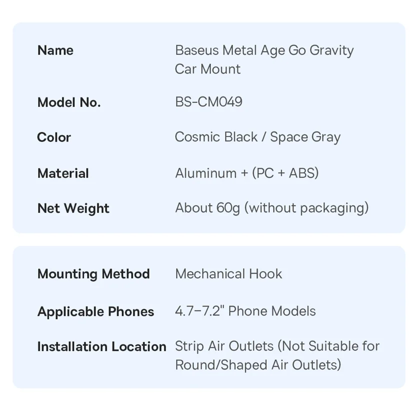 ویژگیهای پایه نگهدارنده گوشی خودرو Baseus Metal Age Go Gravity