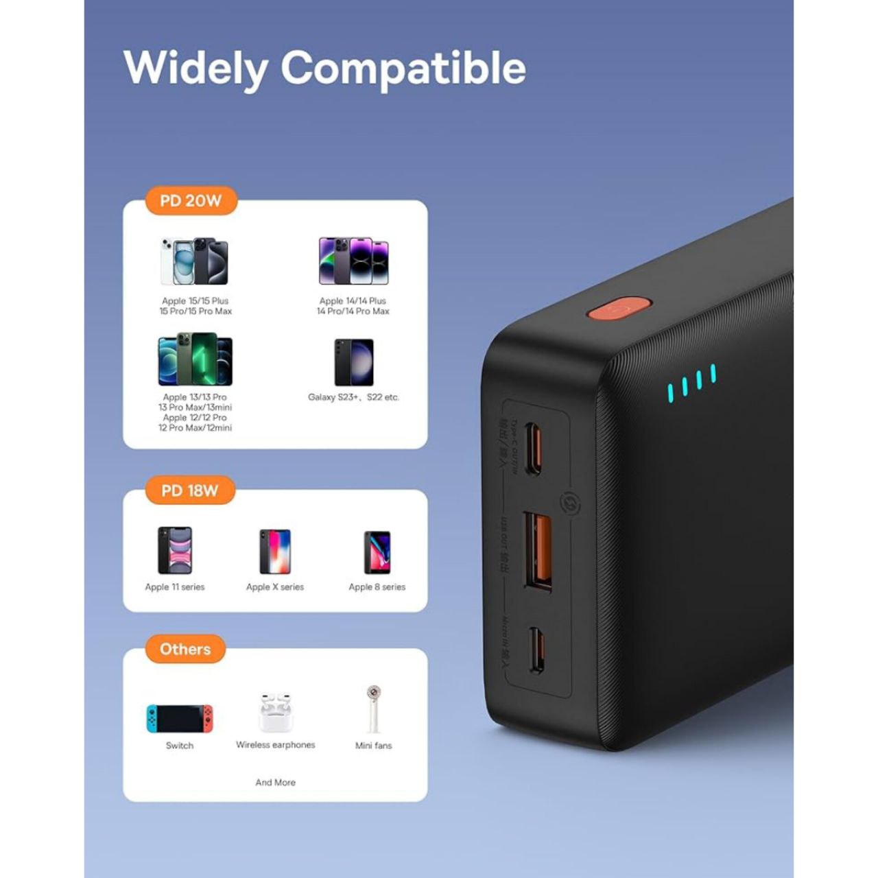 توان خروجی 20 وات، باعث شده پاوربانک Airpow از فناوری شارژ سریع پشتیبانی کند و انواع گوشیها، تبلتها و دستگاههای دیگر را با سرعت بالا شارژ نماید. پورت USB-C قابلیت شارژ سریع و ایمن را فراهم میکند و جریان و ولتاژ را به طور هوشمند تنظیم میکند تا از گرم شدن بیش از حد یا آسیب به باتری جلوگیری شود. پورت USB-A نیز توانایی شارژ دستگاههای قدیمیتر یا سایر لوازم جانبی را به شکل مطمئن ارائه میدهد. این محصول میتواند دو دستگاه را همزمان شارژ کند، که برای کاربرانی که چندین دستگاه دارند یا در سفر هستند، بسیار کاربردی است. ولتاژ و شدت جریان متنوع خروجی، سازگاری گستردهای با انواع گوشیهای هوشمند و دستگاههای الکترونیکی فراهم میکند و امکان شارژ سریع و ایمن را تضمین میکند. فناوری داخلی محافظت از جریان و ولتاژ نیز امنیت استفاده را افزایش داده و عمر باتری دستگاهها را حفظ میکند.