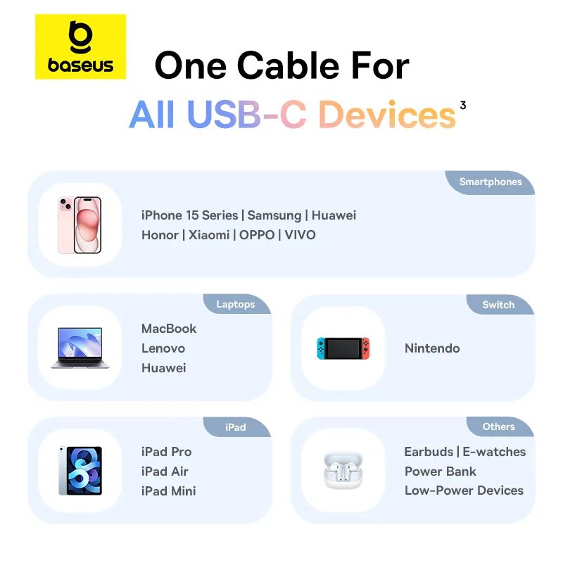 بیسوس به تولید لوازم جانبی قابل اعتماد و با کیفیت بالا معروف است و این کابل ۱۰۰ واتی Type-C نیز از این قاعده مستثنی نیست. چه در حال شارژ باشید و چه در حال انتقال داده، این کابل، وسیله جانبی ایدهآلی برای نیازهای شارژ سریع شماست.