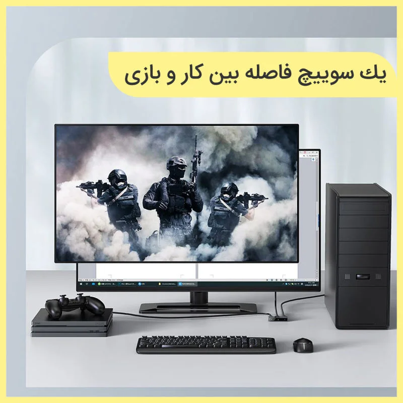 تصور کنید که با دوربین مداربسته، تصاویری را ضبط کرده اید و می خواهید این تصاویر ضبط شده روی دستگاه DVR را بر روی دو نمایشگر مختلف ببینید، برای این کار می توانید از همین سوییچ استفاده کنید و یک تصویر یکسان را در دو نمایشگر مشاهده نمایید.