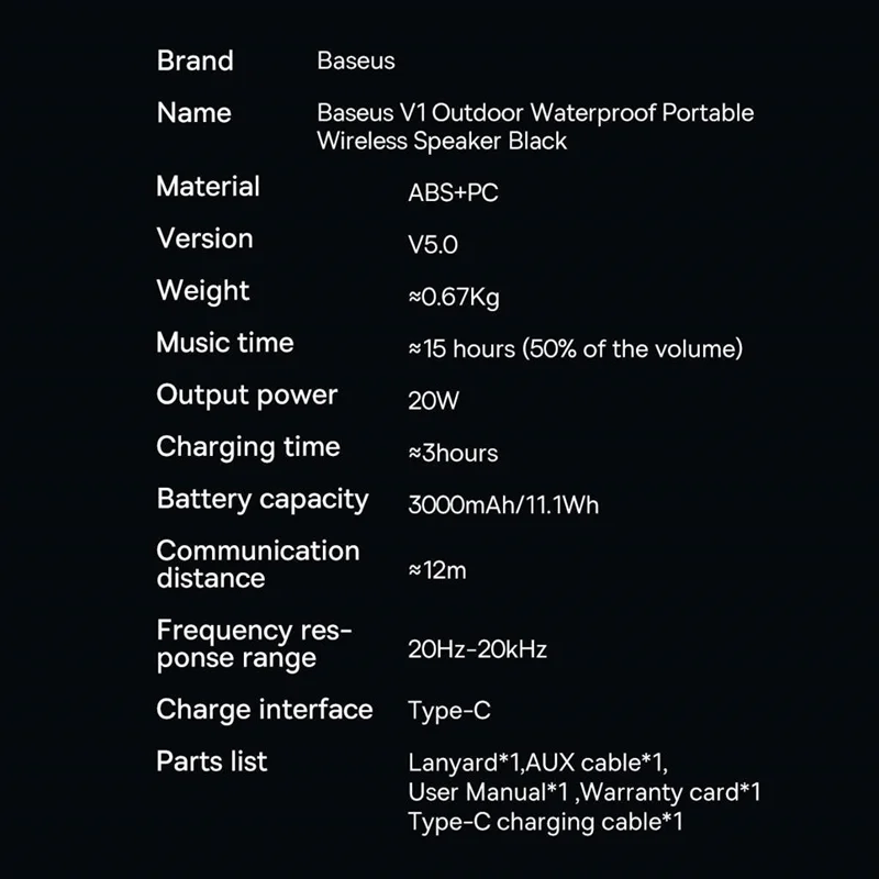 دورهمیها و تفریحات دوستانه اگر با یک موزیک شاد و دلنشین همراه باشد لذت این خوشی چند برابر میشود. برای چنین اوقاتی به یک اسپیکر نیاز داریم تا به کمک ما بیاید. اسپیکری که سبک و قابل حمل باشد تا بتوانیم به راحتی به هر جایی که نیاز داشتیم بریم؛ قابل شارژ باشد تا در طبیعت یا مواقعی که به برق دسترسی نداریم نیازمان به موسیقی را برطرف کند و اتصالی سریع و پایدار را در اختیارمان قرار دهد.اسپیکر بلوتوث قابل حمل بیسوس Baseus V1 Outdoor Waterproof Portable Wireless Speaker WSVY000001 با داشتن این ویژگیها میتواند در لذت بردن از لحظات شیرین زندگی همراهیتان کند.