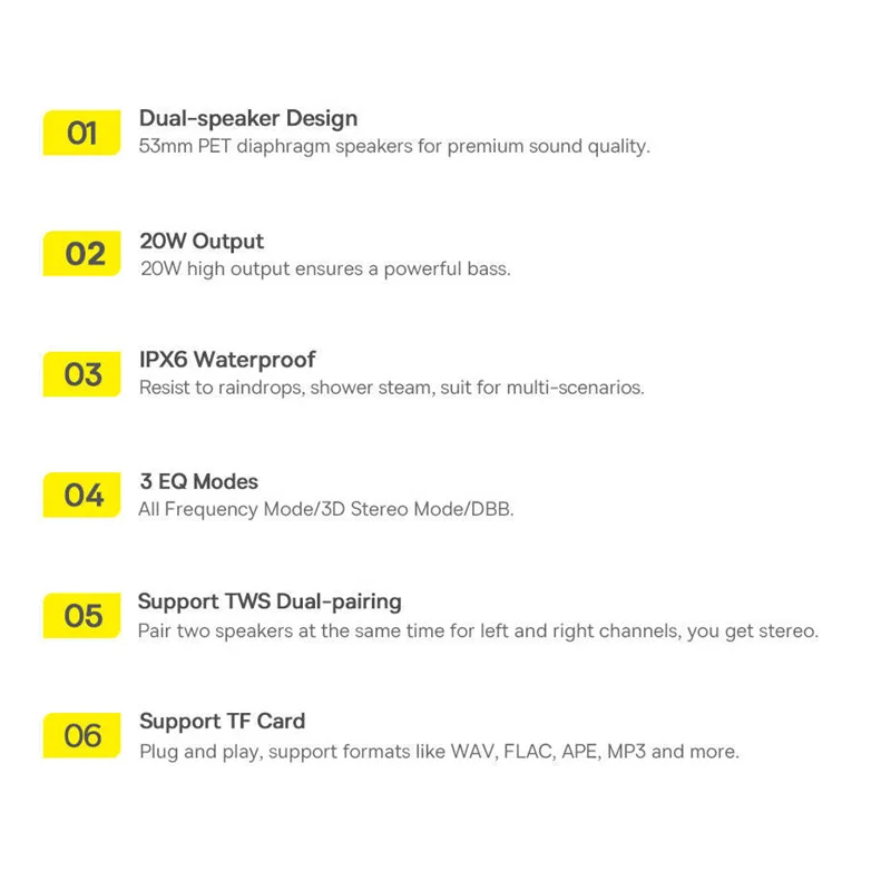 تفریح زیر باران با یک موسیقی زیبا حال خوبی را برایتان به ارمغان میآورد؛ این حال خوب را میتوانید با داشتن این اسپیکر ضدآب بیسوس تجربه کنید. استاندارد ضدآب IPX6 برای شما این امکان را فراهم کرده و اسپیکری مقاوم در برابر باران و رطوبت خواهید داشت.